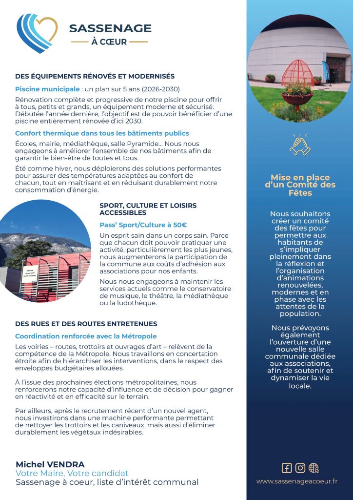 Demander le programme Sassenage à coeur – Continuer de moderniser sans augmenter vos impôts